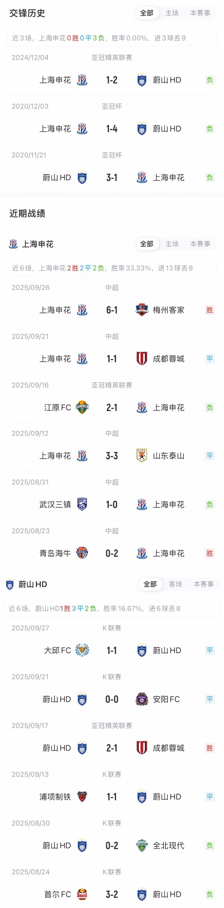 此前亚冠首轮,上海申花客场1-2负于江源FC,蔚山HD主场2-1击败成都蓉城。两队此前共有三次历史交锋,申花全部告负。